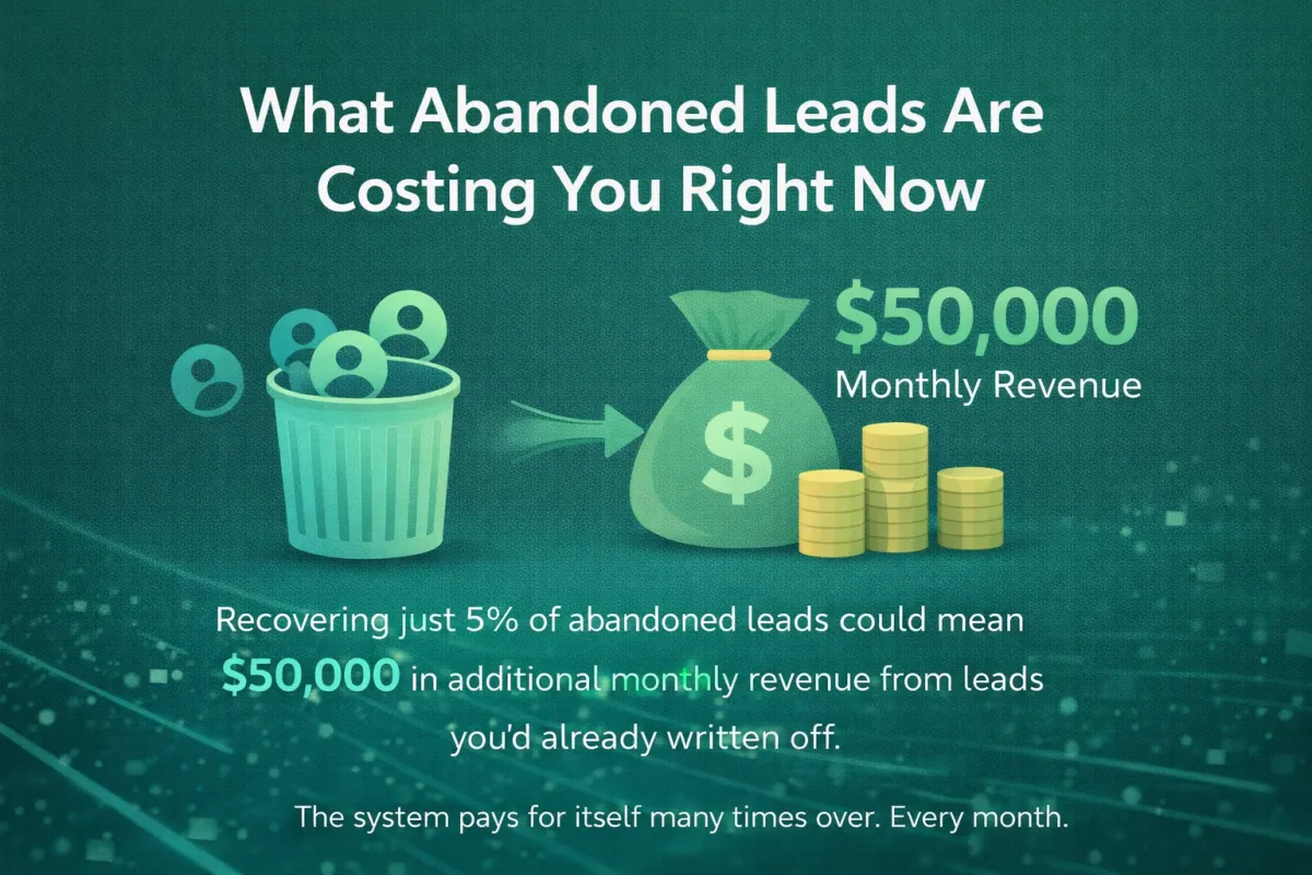 If your team is calling 100 leads a month and 40 go unanswered — and you recover just 5 of those with the 48-Hour Re-Capture system — at a $10,000 average deal value that's $50,000 in additional monthly revenue from leads you'd already written off.