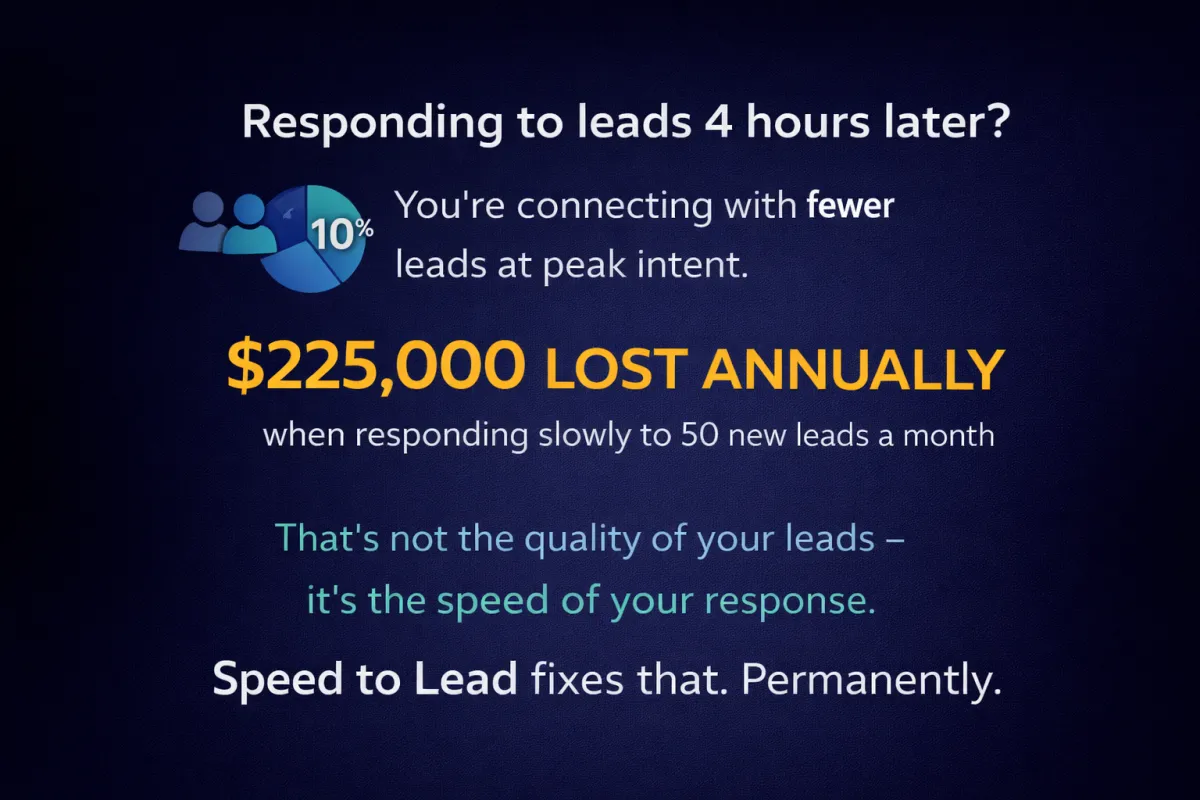 If you're generating 50 new leads a month and responding to them an average of 4 hours later, research suggests you're connecting with fewer than 10% of them at peak intent.